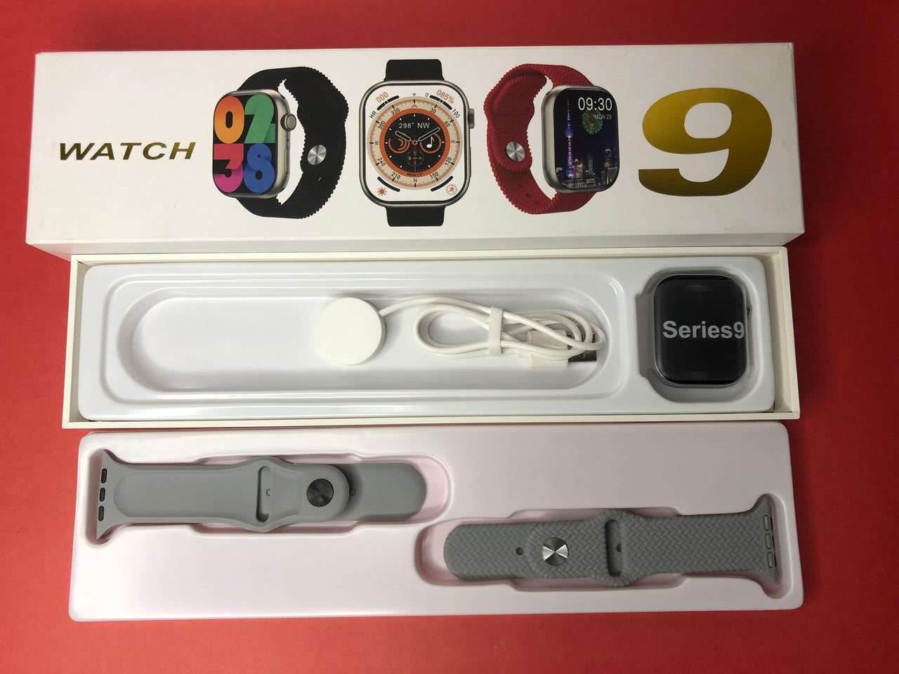 The Smart Watch Series 9 is a stylish, feature-packed smartwatch perfect for your daily needs. It offers fitness tracking, smart notifications, and a bright color display. The watch shows the iconic Apple logo on startup, adding a premium touch. Comes with wireless magnetic charging and works with both Android and iOS.